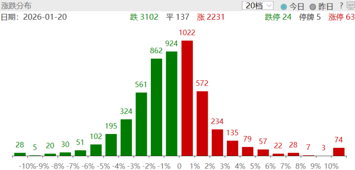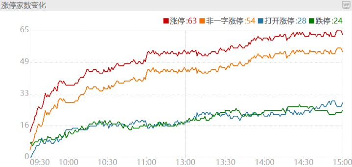 周二涨停个股共计63只,跌停个股24只。