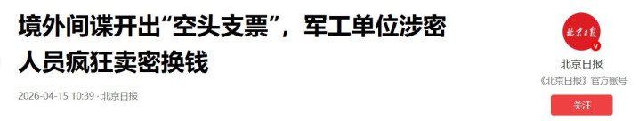 可别忘了,天罗地网天网恢恢,国安机关对间谍当作零容忍,尤其是军工内鬼,发现一齐、查处一齐,毫不姑息!