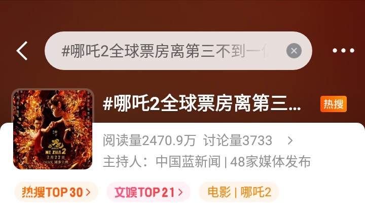 “《哪吒2》票房升至民众第4”,冲上热搜第一位,在榜时长跳动6小时! 由此,不禁让东说念主思起《哪吒2》 ,也即是《哪吒之魔童闹海》在2025年的春节技术,宇宙电影院同步上线放映后,迎来的票房收视长虹!因此,国产电影《哪吒之魔童闹海》走红宇宙!