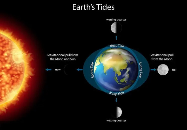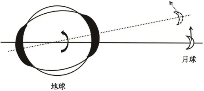 地球名义苟简71%的面积被液态水遮蔽,而水具有流动性,会受到月球引力的眩惑,从而酿成潮汐容或——这等于咱们日常看到的海水涨潮和落潮。由于地球一直在自转,而月球围绕地球公转的速率相对较慢,月球对地球的潮汐引力作用会出现“滞后”容或:当地球自转时,海水会被月球引力眩惑,酿成潮汐凸起,但由于地球自转速率快于月球公转速率,潮汐凸起的位置会略微落伍于月球与地球的连线,两者之间会酿成一个轻微的夹角。