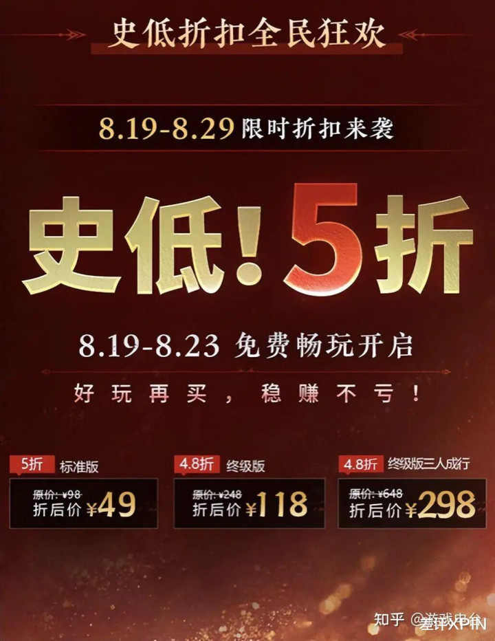在这之前,游戏其实也曾验经了几次“打骨折”,98 的原价在免费前夜一度能对半砍,自然若是还有些罕见渠说念或者行为访佛的话,甚而不错用更低的价钱最先。
