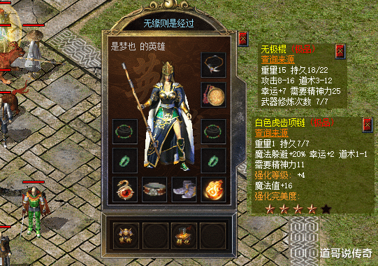 第一,高谈运九套现阶段搭配运九套纯看马内了,运2项链是出现不少了,而高属性刀兵就未几。如上图所示,这把朦胧棍升级了7点谈术属性上限,何况还加了7点红运值确乎牛掰啊。搭配一根运2虎齿项链之后,她的输出是有了保险,可以说一枝独秀了。