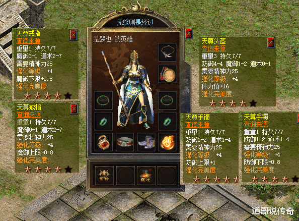 第三,衣饰系列好马配好鞍,天尊套装都配都了,那么衣饰系列也不会差的。如上图所示,天师长袍是巅峰盔甲,谈2荣誉勋章是次顶级系列,青铜腰带和紫绸靴雷同是次顶级系列,这四件套在现阶段仍是很可以了,投降背面还会更换更强的存在。